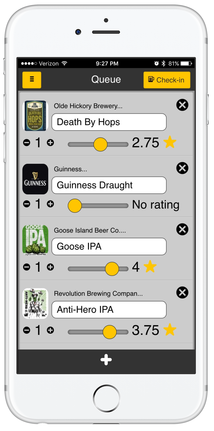 Queue up beers then check them in later, at your convenience. Perfect for all events, from casual brewery tastings to all day beer festivals.